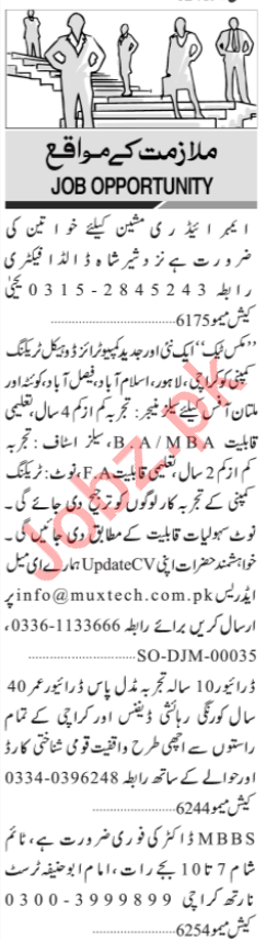 Daily Jang Newspaper Classified Jobs 2019 in Karachi