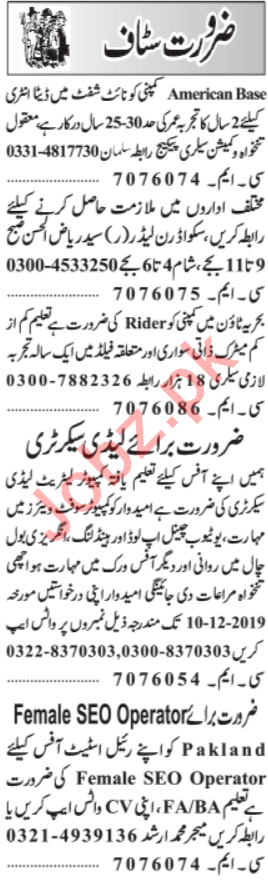 Daily Jang Newspaper Classified Jobs 2019 In Lahore