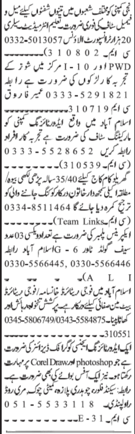 Daily Jang Newspaper Classified Jobs In Islamabad