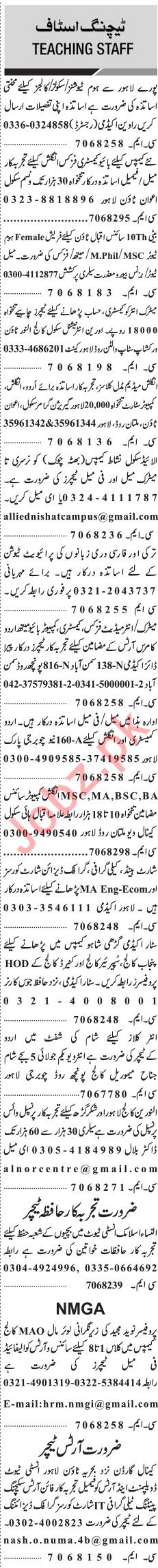 Daily Jang Newspaper Teaching Classified Jobs 2019 In Lahore