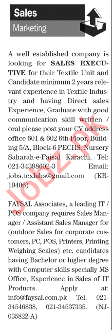 Latest Private Company Sales Posts Karachi 2025