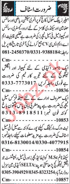Daily Jang Teaching Staff Jobs 2019 In Quetta