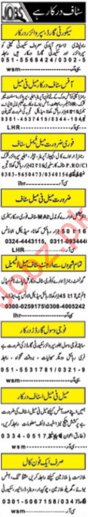 A well reputed and well established company is looking for Security Supervisor, Security Guard, Telephone Operator, Call Operator, Helper, Supervisor, Assistant, Manager, Clerk, HR Officer, Receptionist, Office Boy, Computer Operator, Public Relations Officer, Field Staff, Cook, Waiter, Chowkidar, Diver, House Staff in Lahore.