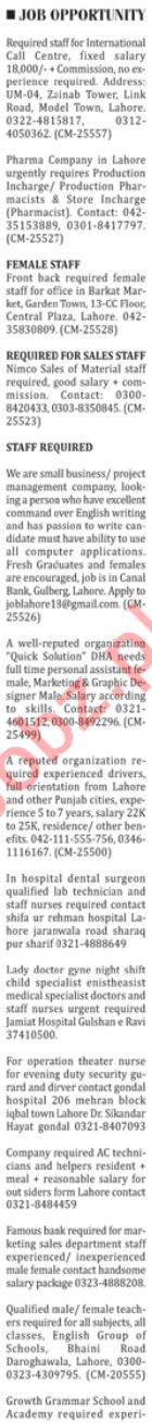 Customer Relationship Officer CRO, Assistant Manager, Branch Manager, Receptionist, HR Officer, Supervisor, Assistant Supervisor, Account Manager, Office Assistant, Specialist, MBBS Medical Officer, Radiologist, Staff Nurse, LHV, Doctor, Lady Doctor, Technicians, Pharmacist, Midwives, Gynecologist, Receptionist, Dispensers, Coordinators, Teacher, Junior Teacher, Primary Teacher, Secondary Teacher and Subject Teacher seeks in well progressive companies, hospitals and schools.