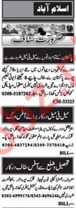 A well reputed Multinational Company is looking for Field Worker, Field Assistant, Field Manager, Field Supervisor, Telephone Operator, Computer Operator, Driver, Clerk, Call Operator, HR Assistant, Accountant, Manager, Security Guard, Cook, Office Boy in Islamabad.