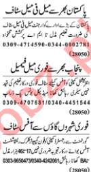 A well reputed companies in Lahore seeks services for Computer Operator, Call Operator, Customer Relationship Officer CRO, Assistant Manager, Branch Manager, Receptionist, HR Officer, Supervisor, Assistant Supervisor, Account Manager, Office Assistant, Receptionist, Clerk, Naib Qasid, Watchman, Sanitary Worker, Security Guard and Drivers.