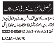 Apply as per details in job advertisement. Login to view further details of how to apply via https://www.jobz.pk online.