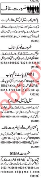 Field professional and experienced personnel for the posts of HR Officer, Clerk, Call Operator, CRO, PRO, Office Boy, Marketing Officer, Marketing Manager, Marketing Executive, Electrician, Salesman & CCTV Operator required for a leading multinational companies in Lahore.