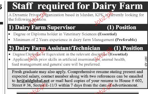 Dairy Farm Supervisor And Dairy Farm Assistant Wanted