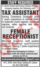 Damas Pakistan Jobs 2020 For Tax Assistant