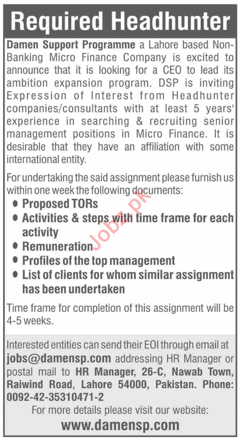 Damen Support Programme Lahore Jobs 2020 For CEO