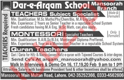 Dar E Arqam School Lahore Jobs 2018 For Teacher