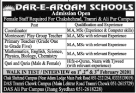 Vacancies in Dar e Arqam School Advertisement January 2021