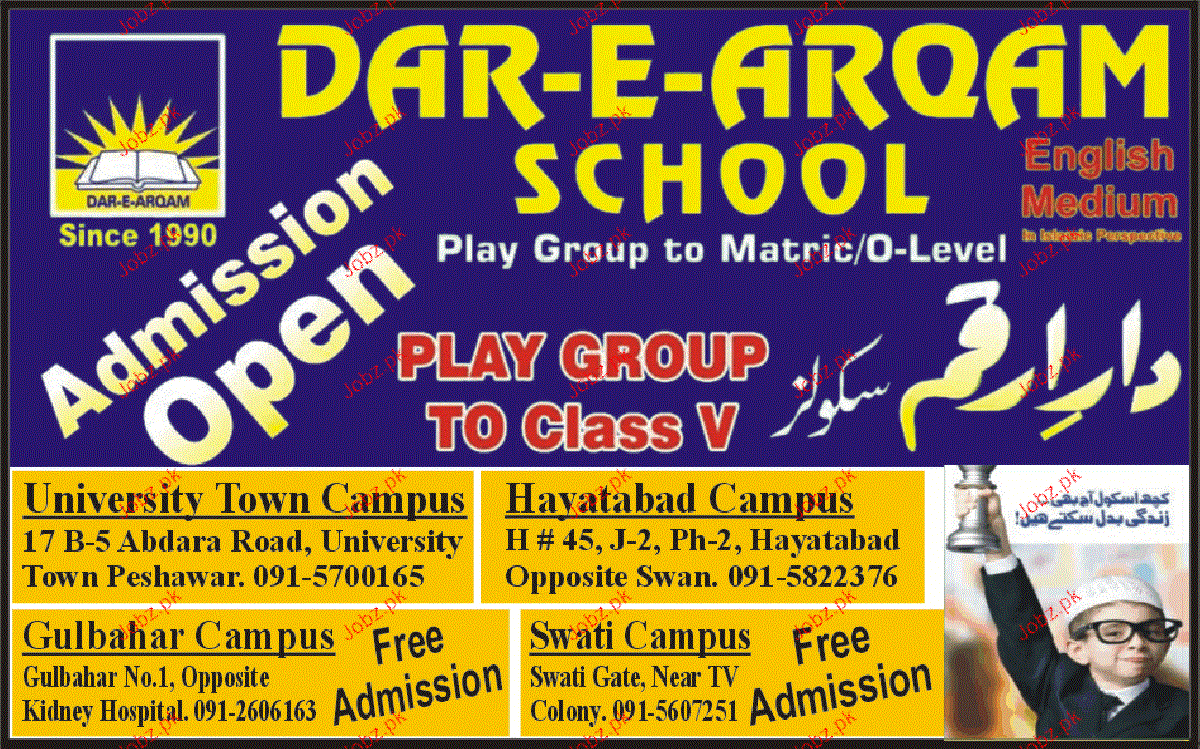 Dara-eArqam School Admission in Play Group to V in Swat. Read newspaper ad for exact details.