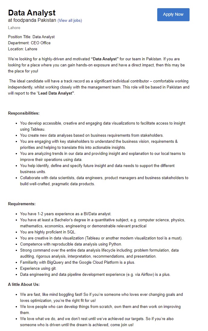 Data Analyst Jobs FoodPanda