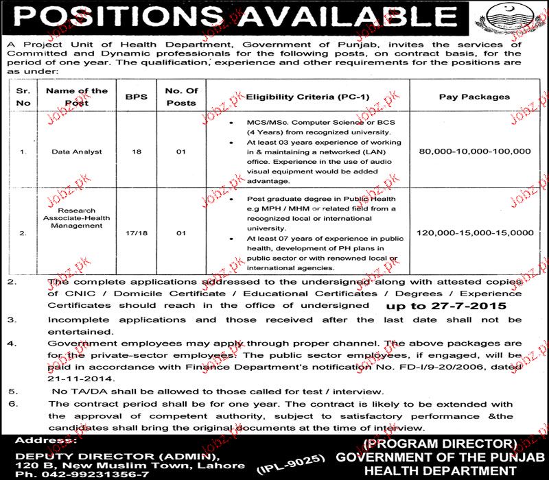 Apply as per details in job advertisement. Login to view further details of how to apply via https://www.jobz.pk online.