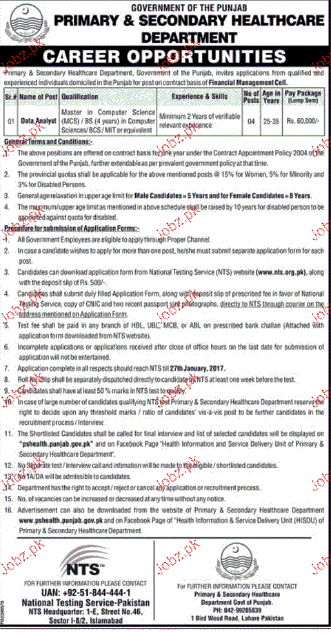 Apply as per details in job advertisement. Login to view further details of how to apply via https://www.jobz.pk online.