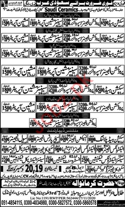 Vacancies in Talal International Overseas Employment Promoters Advertisement December 2020