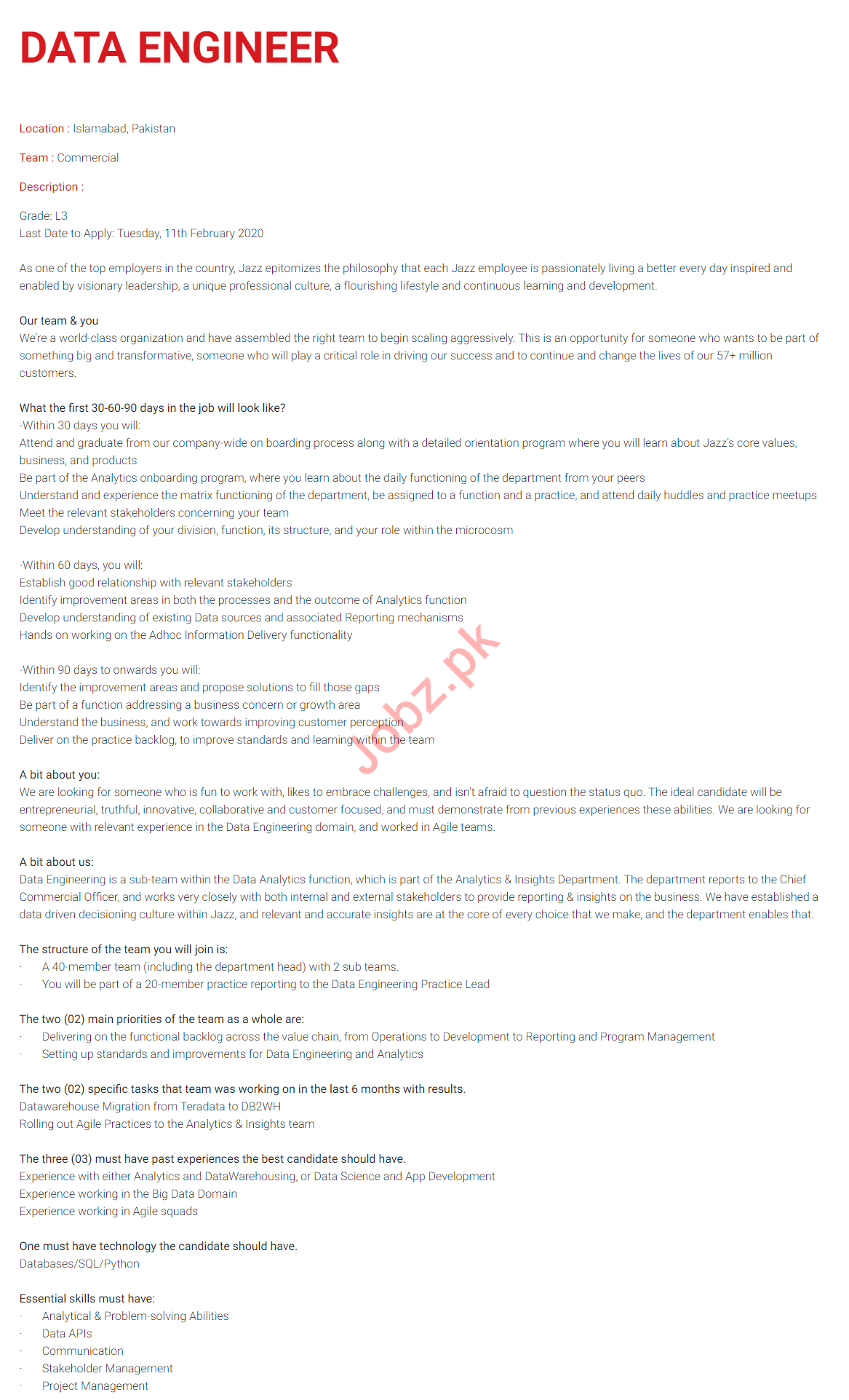 Latest Jazz Telecom Engineering Posts Islamabad 2025