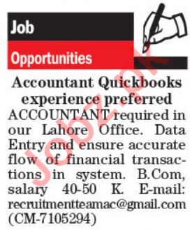 Data Entry Operator & Accountant Jobs 2021 In Lahore