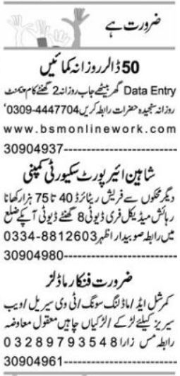 Private Company Faisalabad, faisalabad Punjab Pakistan invites applications from eligible candidates for the post of security guard, data entry operator, security staff, actor and model as per advertisement of January 2, 2025 published in daily Express Newspaper. Candidates with BA, Matric, Bachelor, Middle and Intermediate etc. educational background will be preferred.