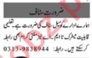 Apply as per details in job advertisement. Login to view further details of how to apply via https://www.jobz.pk online.