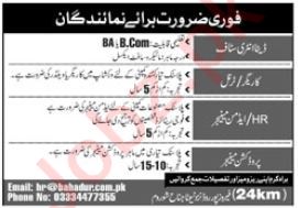 Vacancies in Bahadur Industries Pakistan Advertisement July 2023