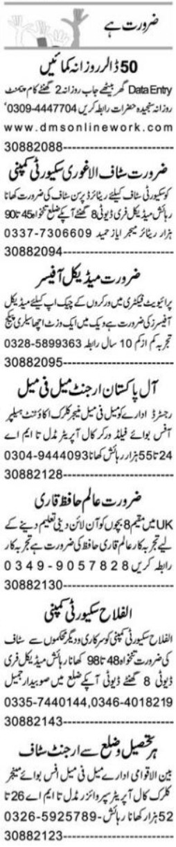 Vacant posts including call operator, field worker, qari, retired person, retired staff, data entry operator, office boy, accountant, supervisor, medical officer, clerk, helper, manager and security staff are announced in Private Company Faisalabad, faisalabad Punjab Pakistan as per 5 June 2024 advertisement in daily Express Newspaper. Middle, Master, Matric, Bachelor and Intermediate etc. educational qualification will be preferred.