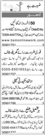 Private Company jobs advertisement dated about 3 December 2024 in daily Express Newspaper invites application for the vacant post of retired staff, call operator, cook, office boy, driver, kitchen helper, manager, patient care, supervisor, data entry operator, clerk and chowkidar in Lahore, lahore Punjab Pakistan. Candidates with Matric, Intermediate, Middle, Bachelor and Master etc. educational background will be preferred.