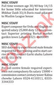 Apply as per details in job advertisement. Login to view further details of how to apply via https://www.jobz.pk online.