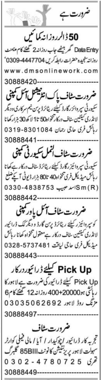Private Company Lahore, lahore Punjab Pakistan invites applications from eligible candidates for the post of mali, aya, pickup driver, security supervisor, supervisor, security guard, data entry operator, security supervisor guard, cook, laundry canteen staff, chowkidar and driver as per advertisement of August 10, 2024 published in daily Express Newspaper. Candidates with Middle, Matric, BA, Intermediate and Bachelor etc. educational background will be preferred.