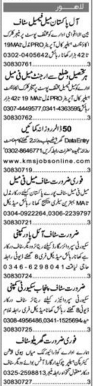 Intermediate, Middle, Matric and Bachelor etc. educational qualification will be preferred.