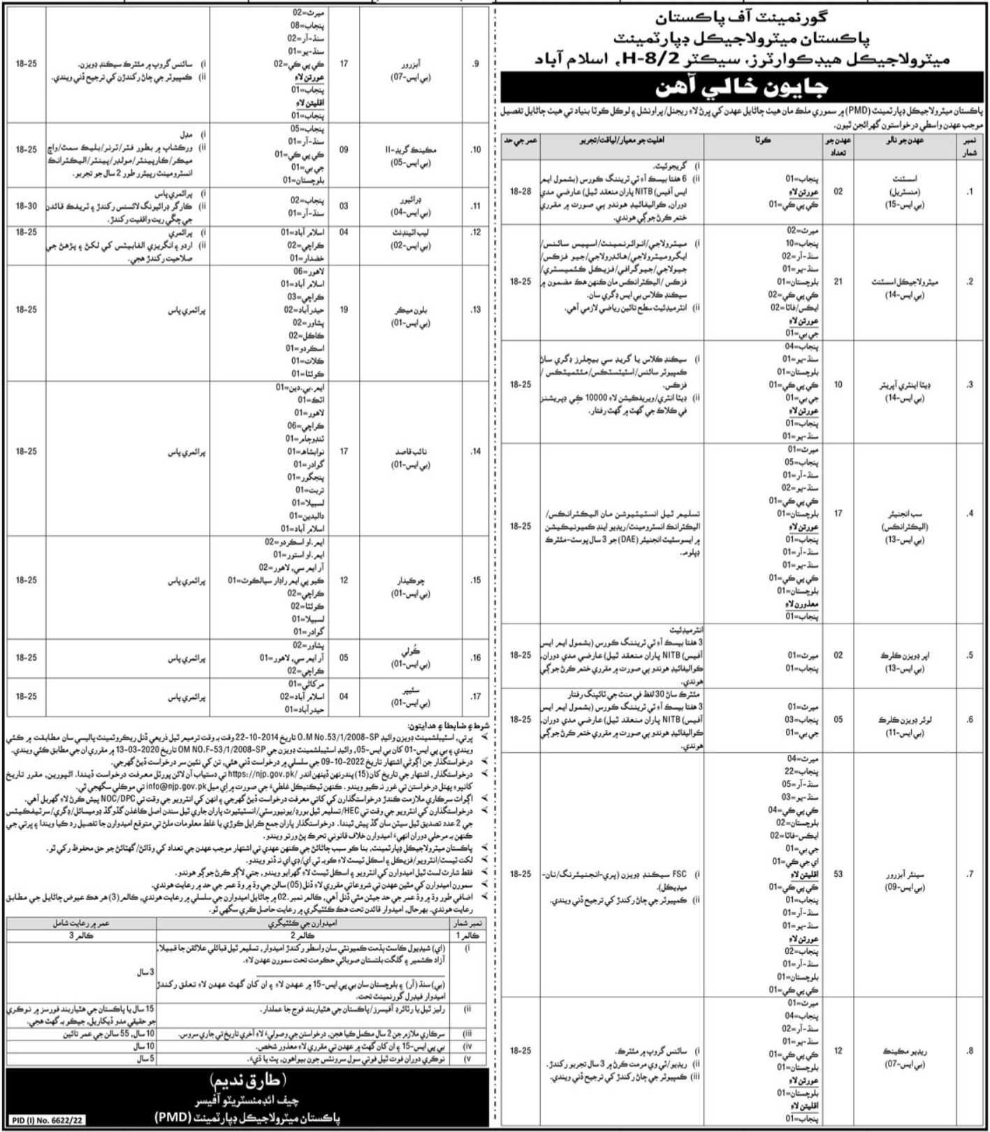 Vacancies in Pakistan Meteorological Department Advertisement May 2023