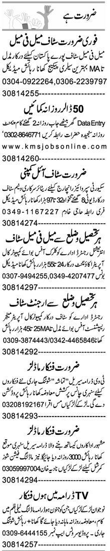 Intermediate, Matric, Middle and Bachelor etc. educational qualification will be preferred.