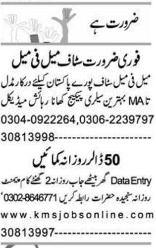 Latest Data Entry jobs and others Classifieds jobs in Private Company closing date is around May 14, 2022, see exact from ad. Read complete ad online to know how to apply on latest Private Company job opportunities.