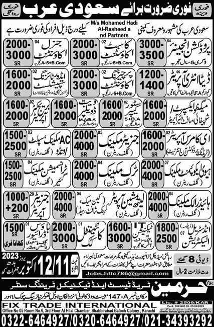 Harmain Trade Test & Technical Training Center is looking for candidates for following posts as per job advertisement published in daily Express Newspaper of October 7, 2023 for location Dammam, riyadh Saudi Arabia: