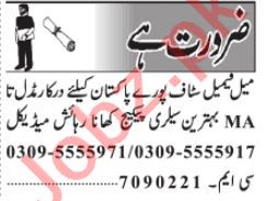 Apply as per details in job advertisement. Login to view further details of how to apply via https://www.jobz.pk online.