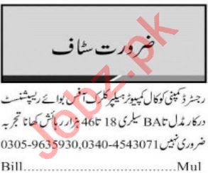 Apply as per details in job advertisement. Login to view further details of how to apply via https://www.jobz.pk online.