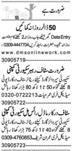Data Entry Operator & Security Staff Jobs 2025 in Faisalabad