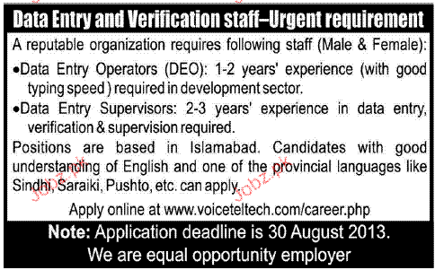 Data Entry Operators and Data Entry Supervisors Wanted