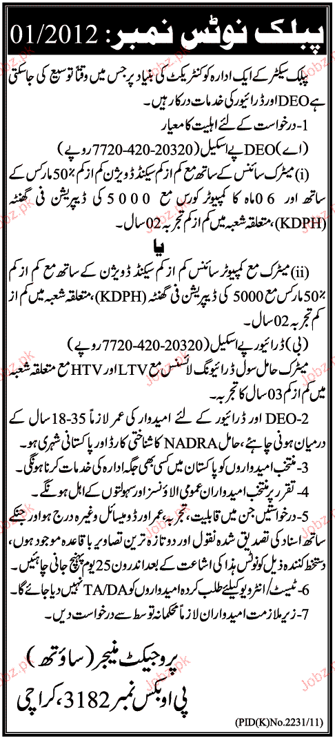 Apply as per details in job advertisement. Login to view further details of how to apply via https://www.jobz.pk online.