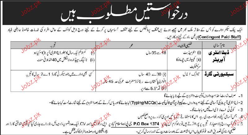 Apply as per details in job advertisement. Login to view further details of how to apply via https://www.jobz.pk online.
