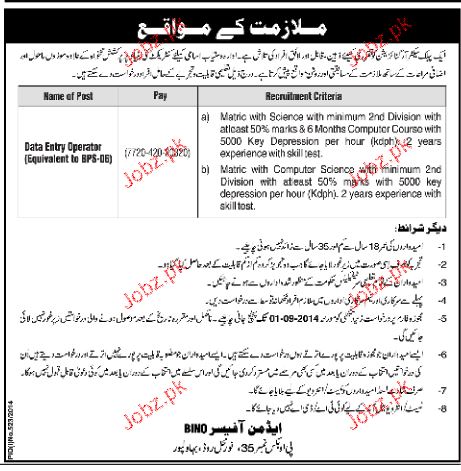 Apply as per details in job advertisement. Login to view further details of how to apply via https://www.jobz.pk online.