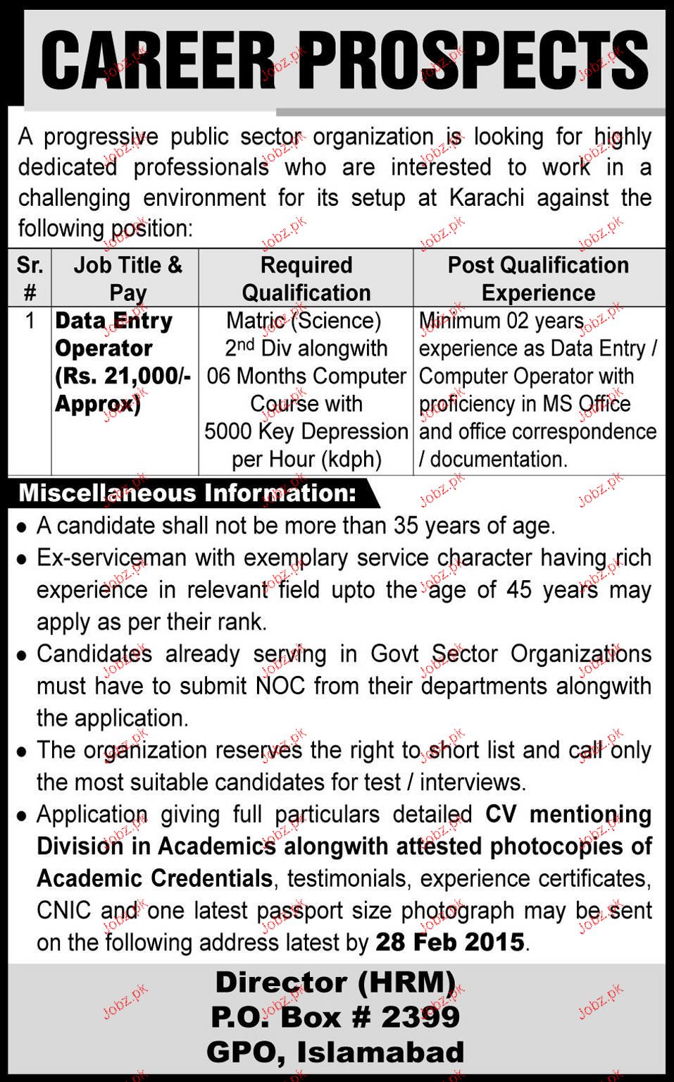 Apply as per details in job advertisement. Login to view further details of how to apply via https://www.jobz.pk online.