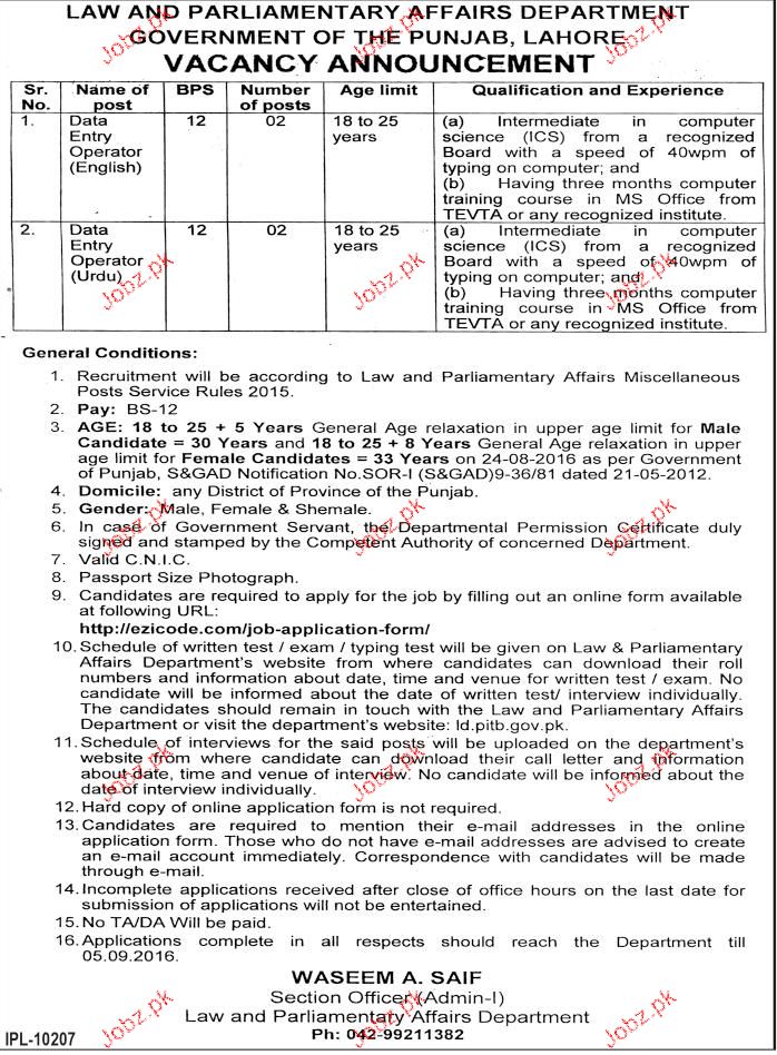 Apply as per details in job advertisement. Login to view further details of how to apply via https://www.jobz.pk online.