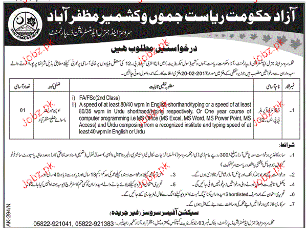 Latest Government Department Data Entry Posts Muzaffarabad 2025