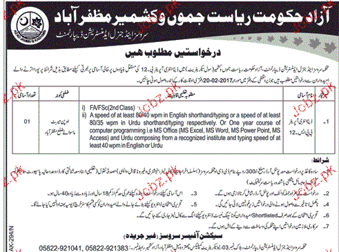 Latest Government Department Data Entry Posts Muzaffarabad 2025