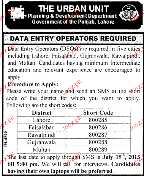 Apply as per details in job advertisement. Login to view further details of how to apply via https://www.jobz.pk online.