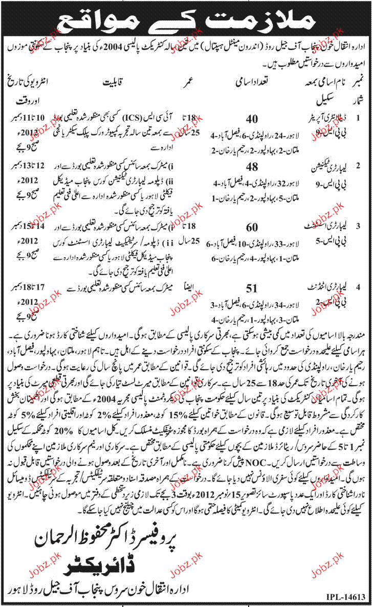 Apply as per details in job advertisement. Login to view further details of how to apply via https://www.jobz.pk online.