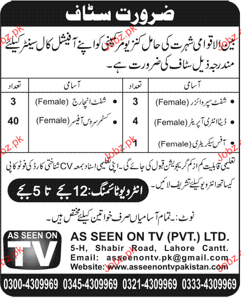 Apply as per details in job advertisement. Login to view further details of how to apply via https://www.jobz.pk online.